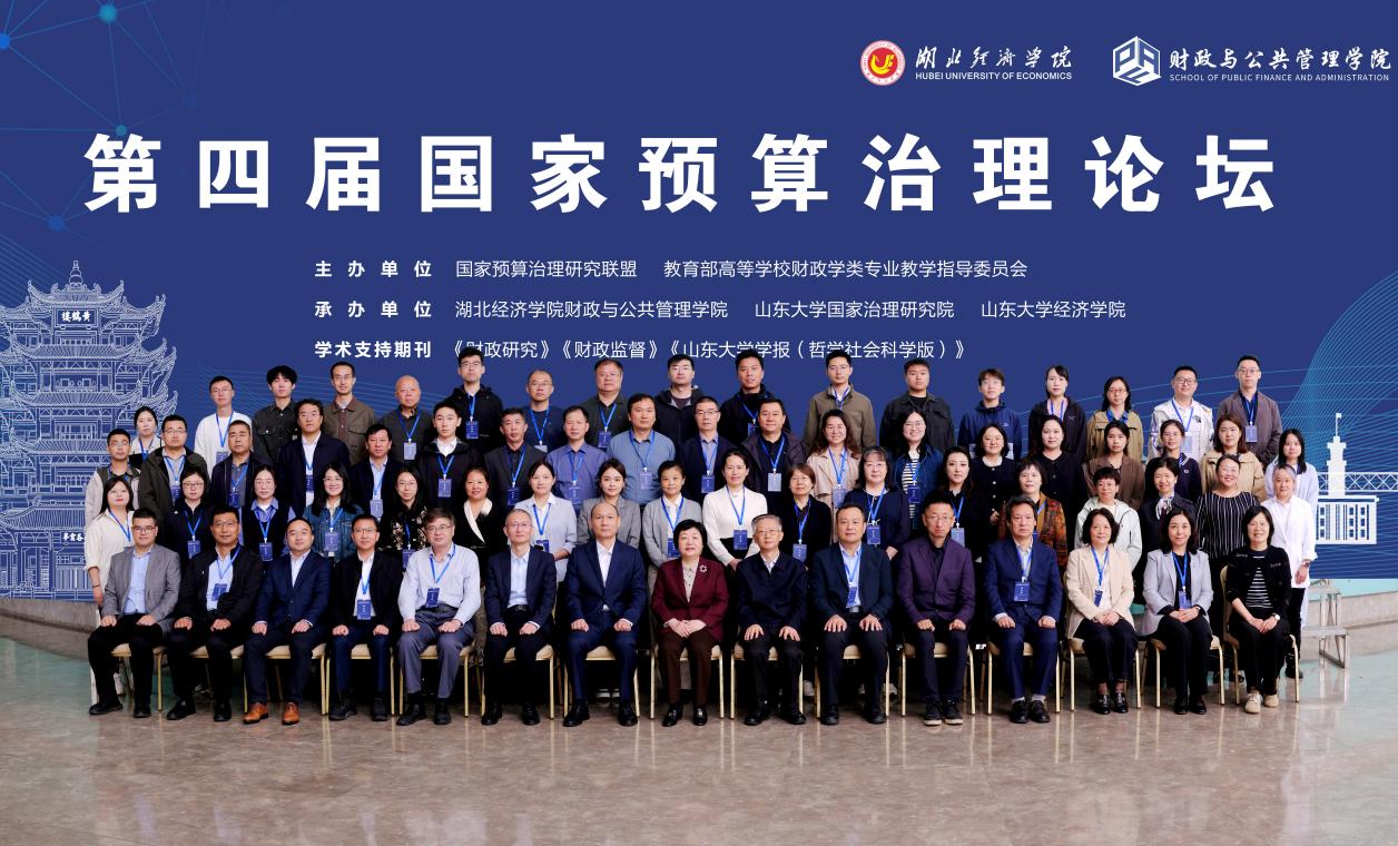 2025年10月18日,由中国国家预算治理研究联盟、教育部高等学校财政学类专业教学指导委员会主办,湖北经济学院财政与公共管理学院、山东大学国家治理研究院、山东大学经济学院承办的第四届国家预算治理论坛在湖北经济学院召开。本次论坛旨在加快构建中国财政学自主知识体系,落实党的二十届三中全会提出的进一步全面深化改革任务,推动现代预算制度理论研究与改革实践同频共振,论坛围绕现代预算制度改革,汇聚多领域顶尖专家,共同探讨预算治理理论与实践。教育部新文科建设工作组组长、教育部财政学类教学指导委员会主任委员、山东大学原校长、中国国家预算治理研究联盟理事长樊丽明,中南财经政法大学原校长、教育部财政学类专业教学指导委员会副主任委员杨灿明,湖北省人大常委会预算工作委员会主任朱慧,湖北省财政厅党组成员、副厅长熊晓飞,上海大学党委常委、总会计师苟燕楠,教育部财政学类专业教指委秘书长、中国国家预算治理研究联盟秘书长石绍宾,湖北经济学院党委副书记汪达,湖北经济学院党委常委张广科出席论坛,来自山东大学、厦门大学、南开大学、中山大学、中央财经大学、上海财经大学、中南财经政法大学、西南财经大学、江西财经大学、河南财经政法大学、西安财经大学、吉林财经大学、兰州财经大学等高校,湖北省人大常委会预算工作委员会、湖北省财政厅和学术期刊的100余名代表参加会议。
